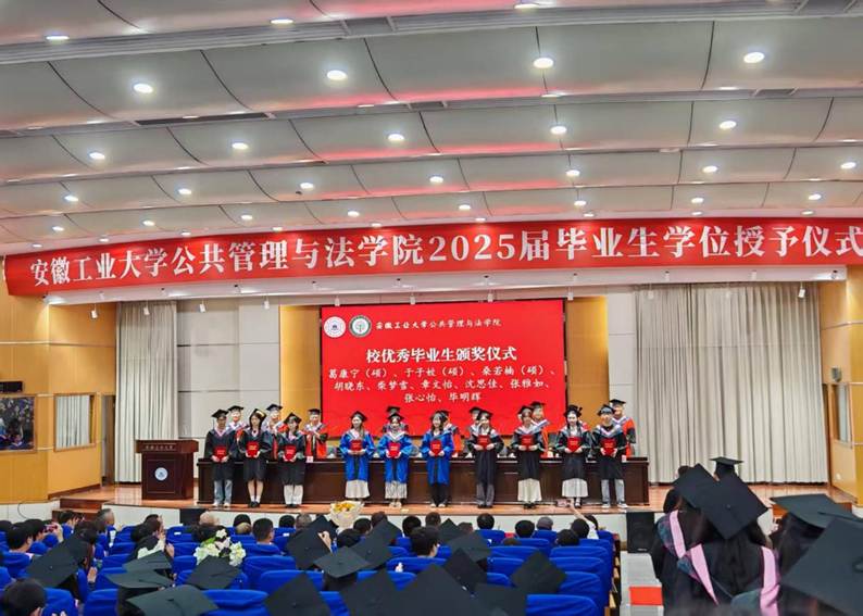 关于表彰2025届省优秀毕业生、校优秀毕业生的决定》,学院领导和各系主任为安徽省品学兼优毕业生、校优秀毕业生颁发了荣誉证书。副院长卢成会宣读了《赌博