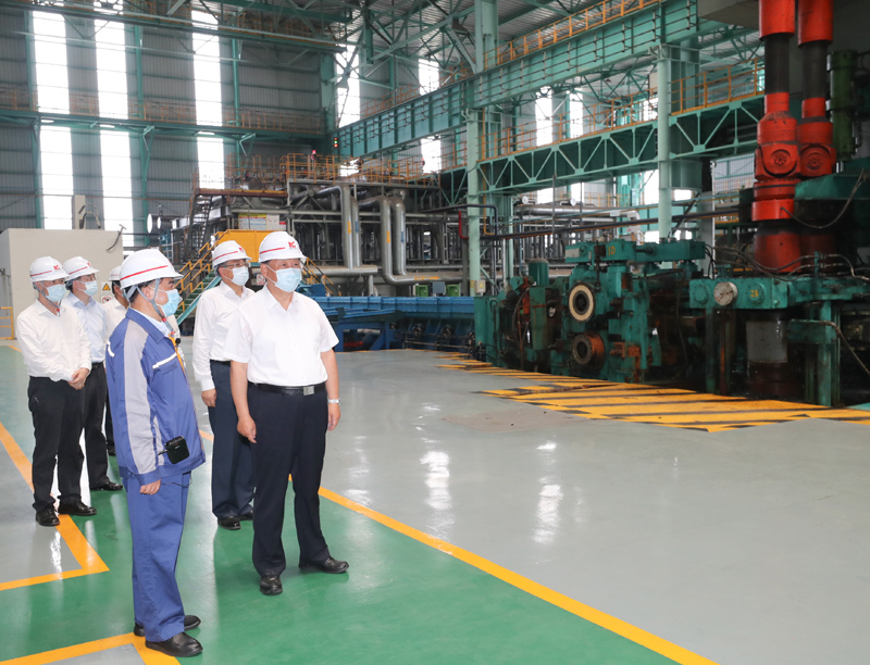 马鞍山市因钢而设、因钢而兴。习近平来到中国宝武马钢集团,了解企业生产经营情况,察看重点产品展示。随后,习近平走进优质合金棒材车间,察看加热炉、初轧机、中轧机等运行情况。车间外,企业劳动模范、工人代表看到总书记来了,热烈鼓掌。习近平亲切地同大家打招呼。他指出,疫情发生以来,马钢克服困难,率先复工复产,上半年产量和营收同比实现“双升”。要抓住深化国有企业改革和推动长三角一体化发展的重大机遇,加强新材料新技术研发,开发生产更多技术含量高、附加值高的新产品,增强市场竞争力。劳动模范是共和国的功臣,要大力弘扬劳模精神。