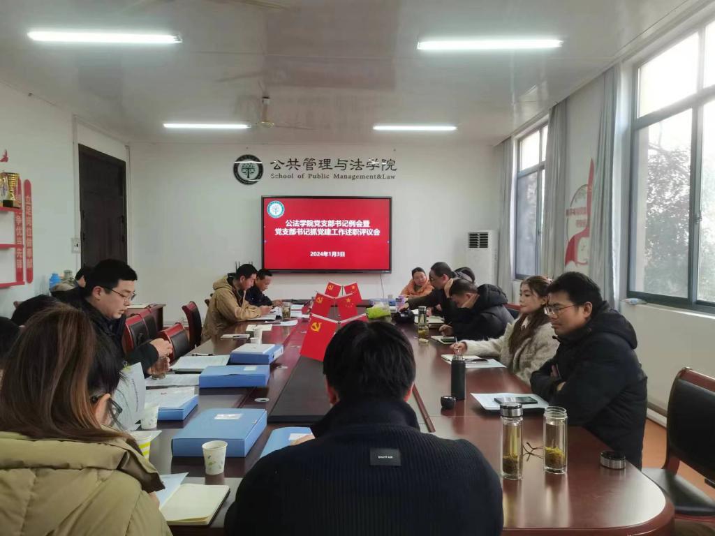 2023年度党支部书记抓党建工作述职评议会暨2024年党支部书记第一次例会。学院领导班子成员、党委委员、纪委委员、各党支部书记、分工会主席、系(室)主任、组织员、办公室工作人员及学生代表参加会议。会议由学院党委书记胡正友主持。
