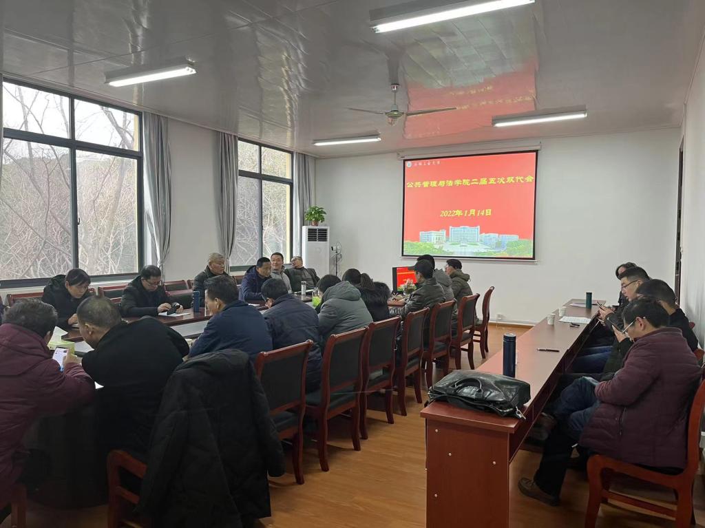 在佳山校区公法楼402召开二届五次双代会,正式代表、列席代表参加了会议,学院工会主席鲁先友主持会议。