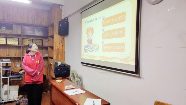 活动中,志愿者们向小学生们宣讲《小学生日常行为规范》、《未成年人保护法》、《预防未成年人犯罪法》等与小学生学习生活密切相关的法律法规,并结合案例与小学生们展开互动。小学生们热情参与,踊跃发言,积极举手分享自己对于案例中社会现象的看法。接着通过PPT向小学生们拓展了关于宪法的小知识,并带领小学生们朗诵了关于课堂法制知识的顺口溜。最后,志愿者耐心指导学生们完成作业,并进行了关于宪法知识的猜谜小游戏。