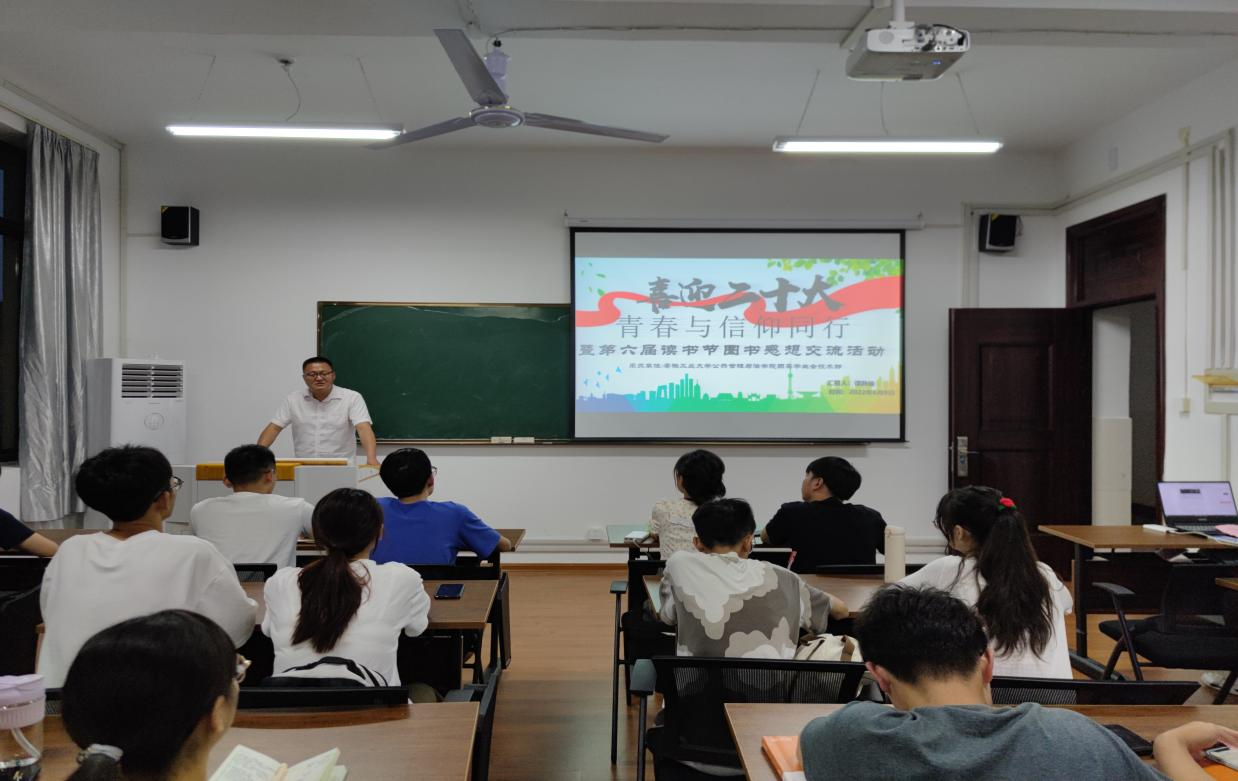 为贯彻习近平总书记致首届全民阅读大会贺信精神,6月8日,公法学院团委学生会技术部在公法楼205开展“喜迎二十大·青春与信仰同行”暨第六届读书节交流分享活动,学院各专业学生代表参加。