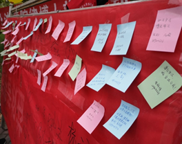 活动前期,队员们将准备的答题题目挂上横幅,摆起展板。活动吸引了众多学子驻足观看,答题展板前围满了许多热情的同学们,他们认真思考、踊跃答题。随后,同学们还各抒己见,用便利贴写下自己对世界法律日和世界保护日的认识和看法。在同学们热切地交流中,很好地体现了当代大学生所应具有的法治正能量和社会正能量。现场氛围十分热烈,整个过程有趣而又生动。