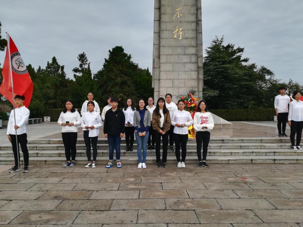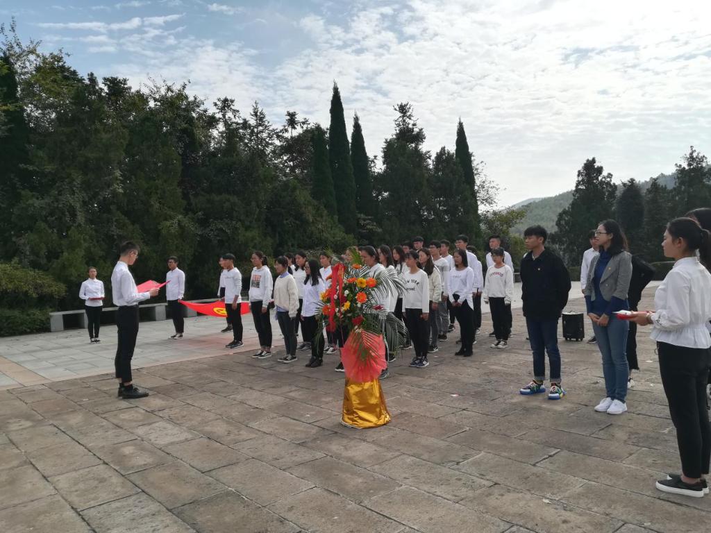 于10月20日赴马鞍山市濮塘革命烈士陵园,开展以“重温光辉岁月,眺望崭新时代”为主题的2018级新生团员“三证”颁发仪式,院团委书记王菁老师、团委副书记汪沁、团委组织部部长吴佳俊同2018级支部团干、团学部门代表共40余人出席此次仪式。