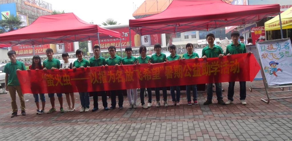 2014暑期社会实践“萤火虫”志愿服务队相继开展一系列针对外来务工子女的活动,如“我是小小志愿者”图书馆志愿活动、“以报为名,放飞希望”大型公益助学活动、“夏日送清凉”、“科普知识进校园”、“长江水质调查”、“爱心包裹派发”等,脚踏实地践行“奉献、友爱、互助、进步”的志愿者精神。