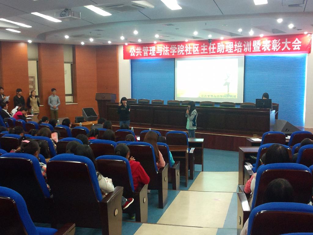 于图书馆第一报告厅举办社区主任助理培训暨表彰大会。本次大会邀请了解放路东苑社区党总支书记方宝,花果山社区书记李伟以及校团委老师葛琎,院团委工作负责人和学院相关老师。本次活动还得到马鞍山日报的专题报道。