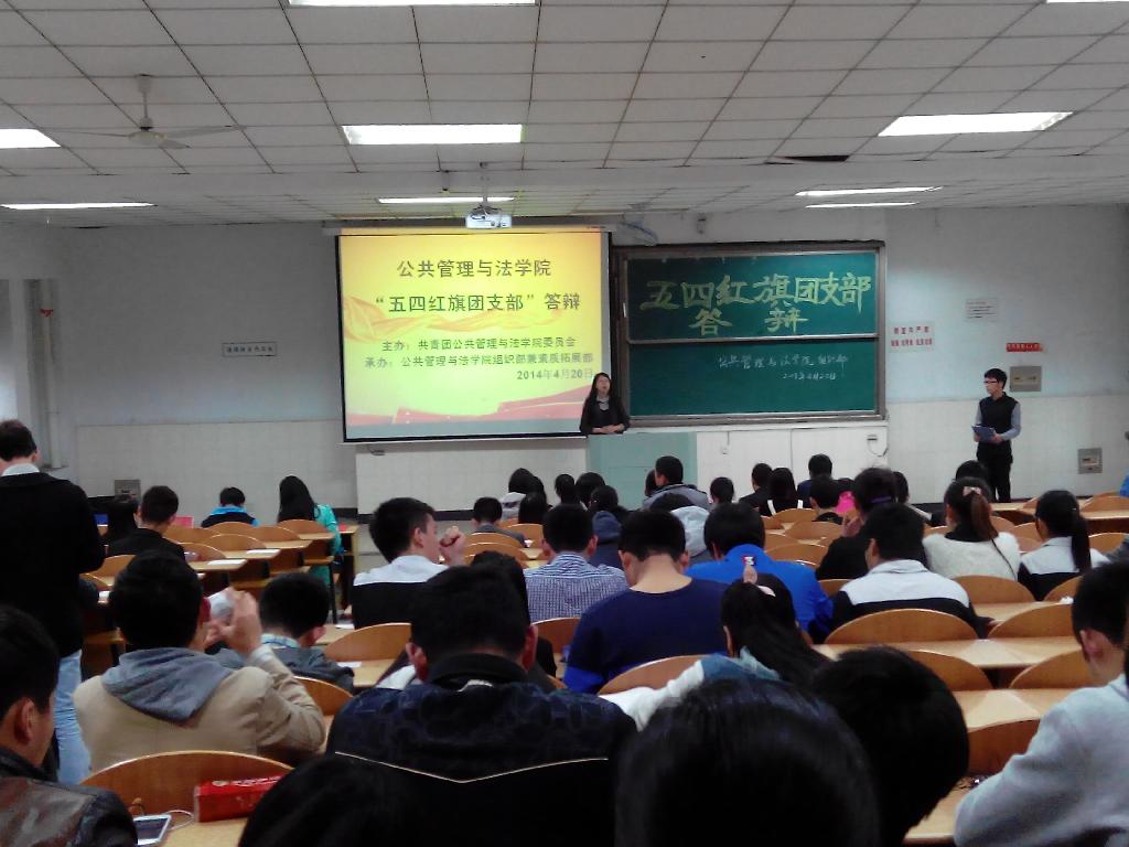分团委于4月20日在阶教104举办了学院2013—2014学年“五四红旗团支部”答辩会。院团委工作负责人、辅导员以及学院主席团成员受邀担任此次答辩会的评委。