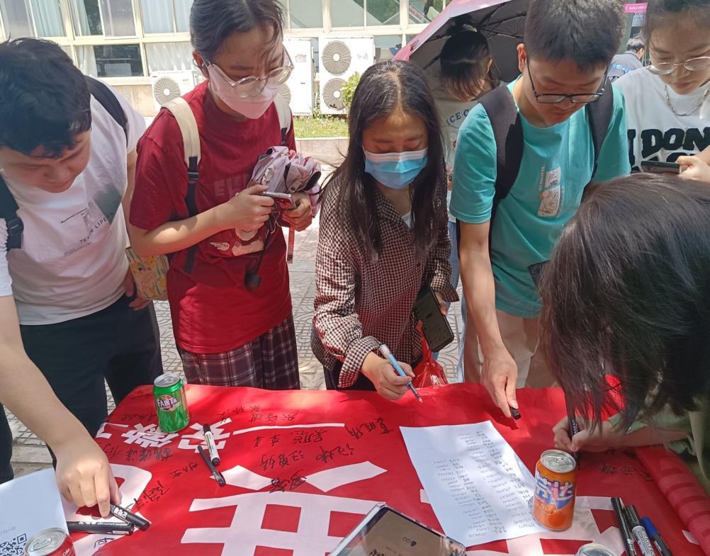 为弘扬诚信之风,营造健康向上的良好氛围,5月14日中午,由学工部主办,公法学院承办的“深入学习贯彻党的二十大精神,共创诚信风”标语签名活动在佳山校区三食堂门口开展。