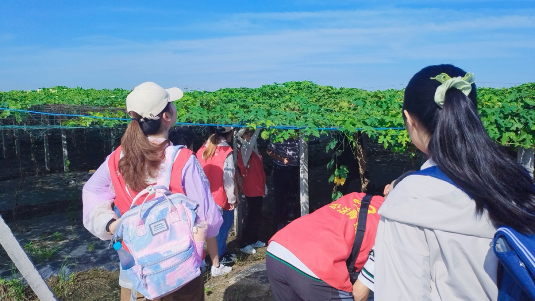 、艺术设计学院的学生代表,赴我校定点帮扶的姥桥镇红光村瓜蒌产业基地开展劳动体验,在驻村工作队、村干部的带领下,深入乡村振兴一线,了解乡村产业发展。