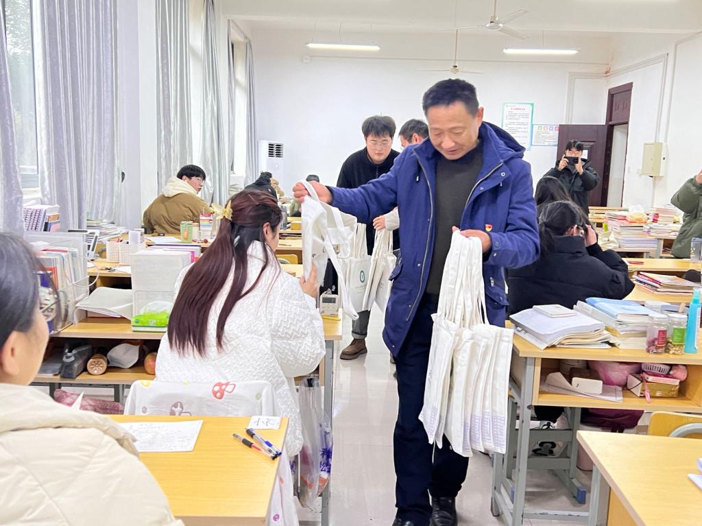 胡正友带领学院老师走进考研教室,为学子们发放实用精美的“考研大礼包”,里面包括中性笔、2B铅笔、尺子等考试必备工具,祝愿考研学子在考场上能够提笔如神、文思泉涌。胡正友书记与同学们进行问答互动,送上真切的关怀与鼓励。周浩然浩然表示,愿同学们扬帆起航,此行必成功,公法全体师生是一家,莘莘学子的每一个梦想、每一份努力,都由我们共同来守护。同学们也对学院老师们的温馨祝福表示感谢,并表示将坚定考研信念,保持学习动力,会带着学院的关心与祝福轻装上阵。
