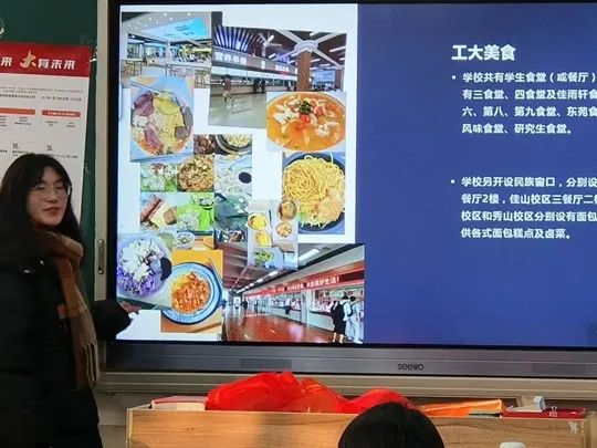 (图为宣讲人热情向学弟学妹介绍安工大美食)