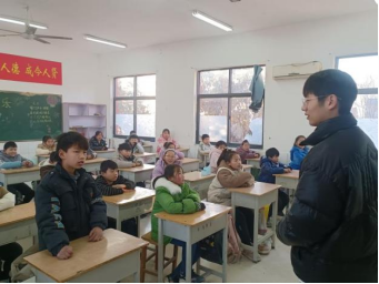 在课堂之后志愿者邹胜康鼓励同学们积极奋斗努力实现自己的梦并约定好今年暑假再来与孩子们见面。