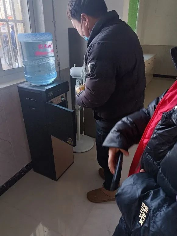 (图为附近工地工人前来驿站喝水歇脚)