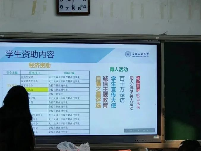 学生资助政策的详细内容,利用辅导员提供的材料制作能够充分展现我校资助育人、助力梦想放飞的PPT。同时提前与母校老师对接,约定好资助政策宣传活动的开展时间和地点,由老师安排无为中学高三年级部分家庭困难学生和高三十九班全体同学参与本次宣传活动。