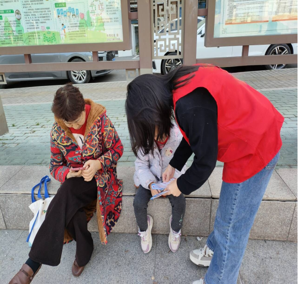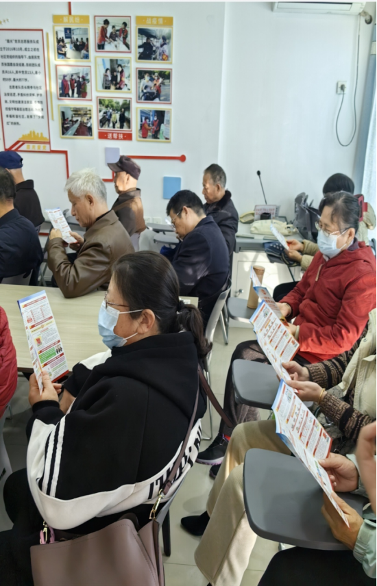 图为社区居民认真观看宣传单