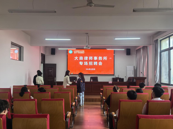 为深入学习贯彻党的二十大精神,落实国家“稳就业”“保就业”决策部署,拓宽就业渠道,促进学生高质量就业,落实访企拓岗工作,进一步搭建人才供需对接交流平台,4月2日,公法学院联合安徽大森律师事务所举办法学毕业生专场招聘会,助力2023届毕业生高质量充分就业,拓宽2024届毕业生实习实践渠道,专场招聘会在公法楼301举行。