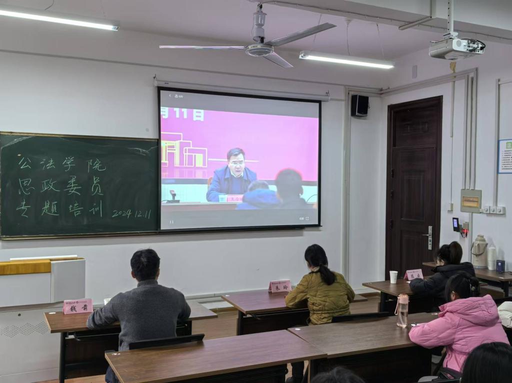 为深入学习和贯彻党的最新理论成果,进一步加强和改进公法学院班级思政工作,提升班级思政委员的专业素养和综合能力,公法学院习研会于2024年12月11日在公法楼205教室组织开展了思政委员专题培训。本次培训以观看直播的形式展开,特别邀请公法学院团学工作负责人钱前、23级学生辅导员朱玲、22级学生辅导员陈云和各班级思政委员共同参加。习研会负责人任逸鸣主持本次培训讲座。