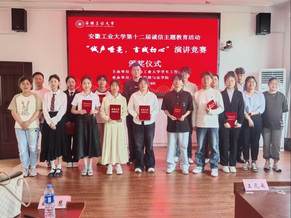 于5月19日14时在公法楼301教室成功举办了第十二届诚信主题教育活动“诚声嘹亮,言践初心”演讲竞赛。化学与化工学院的王元云老师、外国语学院的刘晓慧老师、能源与环境学院的吴飞老师、赌博