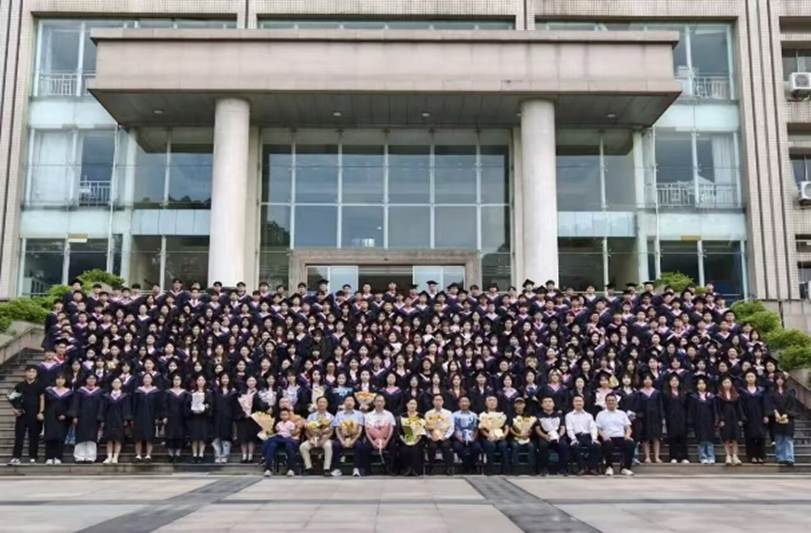 学位授予仪式在激情的校歌声中结束,青春永不散场,愿每一位毕业生带着母校的期望与教诲,在各自的人生道路上绽放光彩,砥砺前行。会后学院师生在主楼广场合影留念。(撰稿:钱前、邢维迢;审核:周浩然、胡正友)