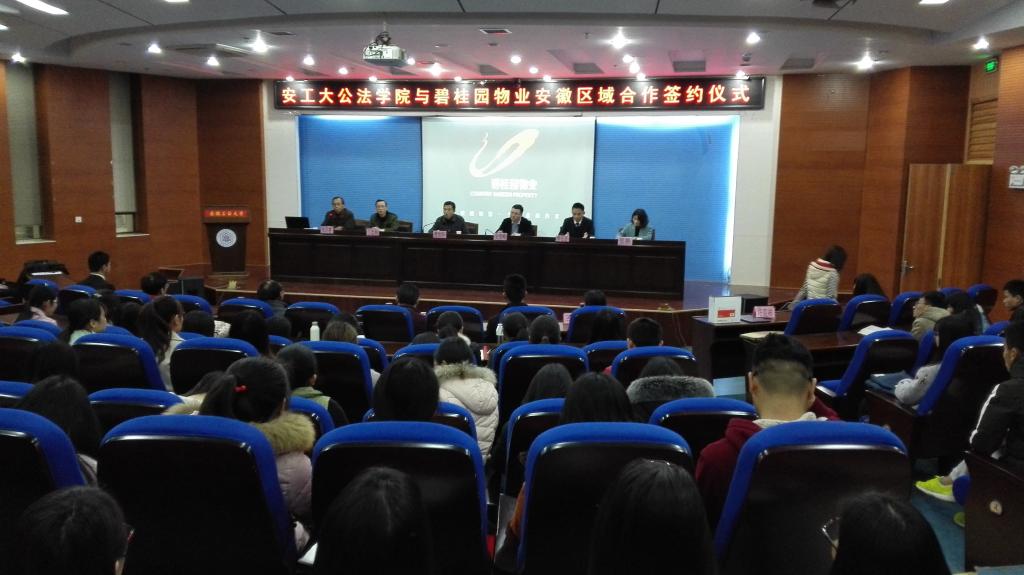 3月15日,学院与广东碧桂园物业服务股份有限公司安徽区域总公司在校秀山校区振华图书馆第一报告厅举行了产学研合作签约暨授牌仪式。本次签约授牌仪式由学院院长张洪根主持,出席本次仪式的有广东碧桂园物业服务股份有限公司安徽区域总经理吴爱峰、区域人力资源经理钟长征等公司代表,校学工部就业指导中心主任丁忠利,学院党委书记曹世华等院领导、各系主任、辅导员和学生代表。