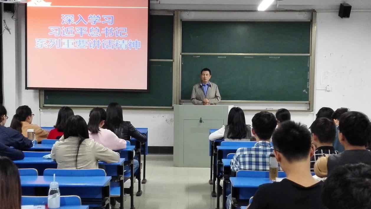 下午,学院党委书记曹世华在教D309为学院全体学生党员做了关于《深入学习习近平总书记系列重要讲话精神》的专题讲座。