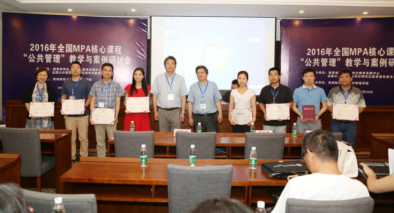 许克祥副院长、问延安老师参加2016年全国MPA核心课程“公共管理学”教学与案例研讨会,此次研讨会由教育部学位与研究生教育发展中心和全国公共管理专业学位研究生教育指导委员会联合举办,西南财经大学公共管理学院承办。来自复旦大学、天津大学、美国密苏里大学圣路易斯分校等近90所MPA培养院校的100余名专家学者参加了本次研讨会。