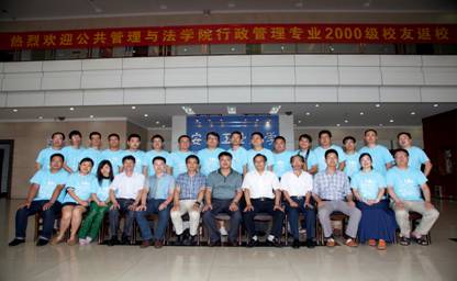 行政管理2000级(1)班毕业生欢聚母校举行毕业十周年庆祝活动。院长张洪根、副院长许克祥、班主任曹林、辅导员路壮志、任课教师代表叶常林、徐德信、白建民、王薇、虞维华、林忠心、原院团委书记王俊等参加庆祝活动。