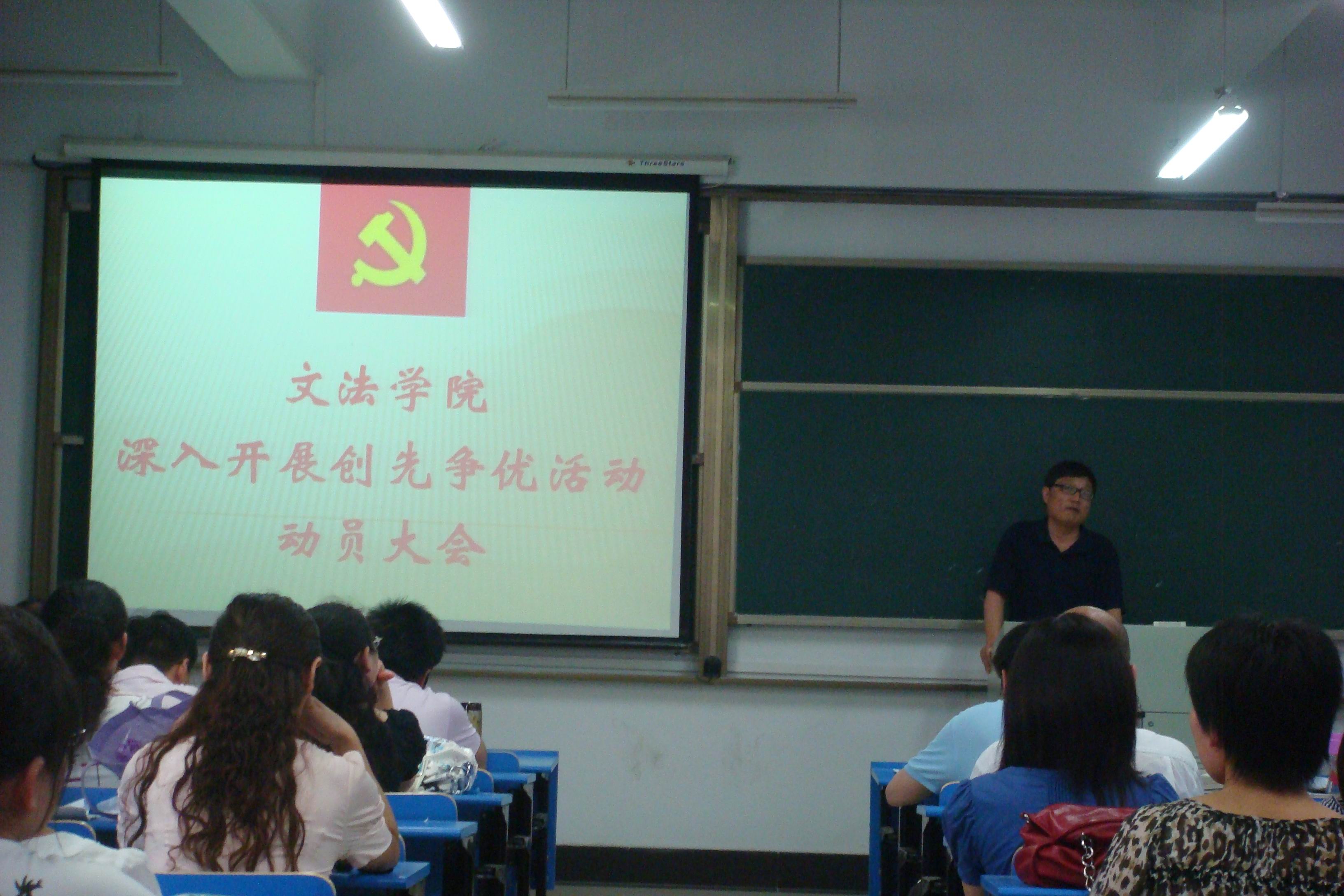 6月28日下午,学院党委召开深入开展创先争优活动动员大会,学院全体党员参加了会议,院党委书记居南生主持会议。 居南生传达了校党委《关于在全校党组织和党员中深入开展创先争优活动的实施方案》的精神,就《关于文法学院党委深入开展创先争优活动的具体方案》进行了全面部署,结合学院实际,提出以“创先谋发展,争优出人才”为学院开展创先争优活动的主题。针对教师、学生不同类别、不同岗位的党组织和党员的特点,进一步明确了先进基层党组织和优秀共产党员的具体条件,学院党委要求各党支部要制定符合本部门实际的活动方案,突出创先争优活动主题,精心设计特色鲜明、务实管用的载体,不断提高创先争优活动的实际效果。 居南生强调,学院全体共产党员都要积极投身创先争优活动中,把争优活动与中心工作及每名党员各自岗位特点相结合,与教书育人,建立师德良好风尚相结合,开展创先争优活动与学院当前工作相结合,统筹推进,切实保证活动效果。要与学习实践科学发展观活动整改落实工作相结合,全面完成整改落实后续任务,全面兑现向群众作出的承诺,健全完善科学发展长效机制。在学院的改革与发展中,党员要确实起到示范和模范带头作用,带动教职工为本学院本单位发展做贡献。 会议结束后,各党支部开展了相应的活动。 |