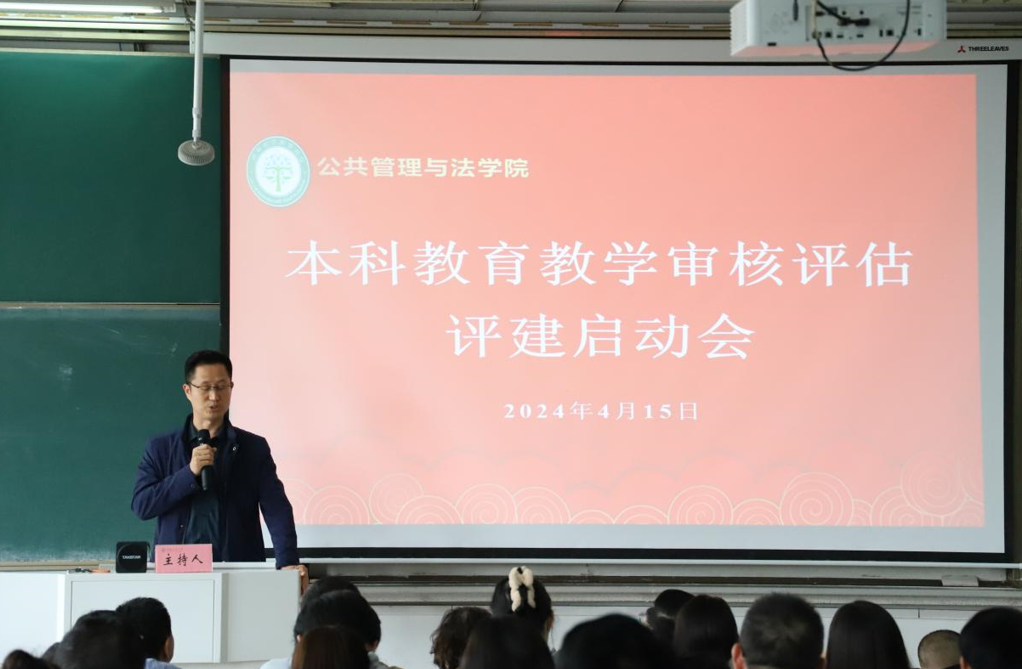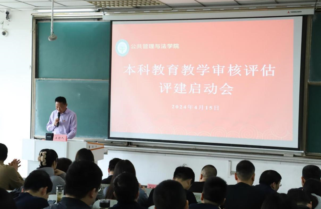 在教三南302教室召开新一轮本科教育教学审核评估评建工作启动会。学院党委书记胡正友主持启动会,学院评建工作领导小组全体成员、党员教师和各年级党员学生参加会议。