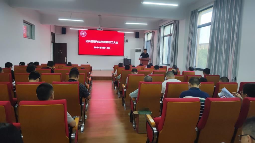 在学院楼301报告厅召开教职工大会,学院党委书记胡正友主持会议,学院全体教职工参加会议。