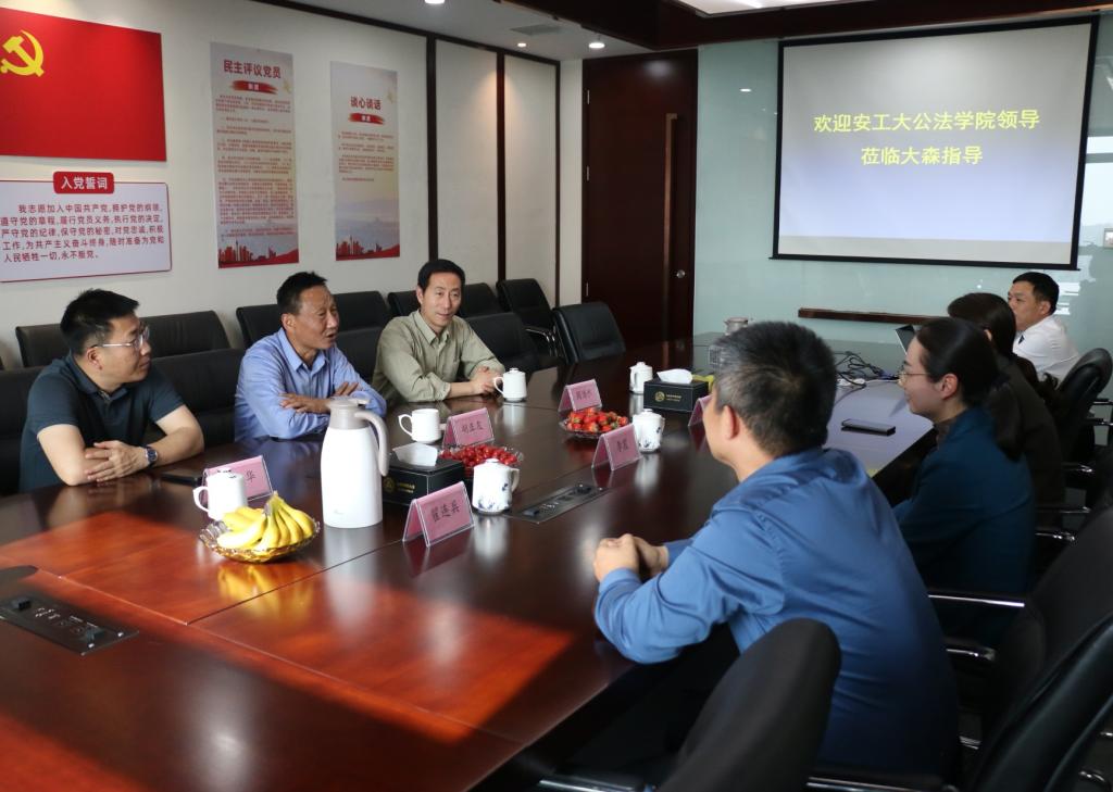 学院一行还先后来到安徽大森律师事务所、兴政教育两家校企合作单位及实践就业基地开展交流,并看望公法学院校友。胡正友对合肥大森所及芜湖、马鞍山等分所对学院学生培养和就业工作给予的支持表示感谢,对兴致教育负责人和校友捐助支持学院体育文化活动,以及长期指导支持学院学生就业能力培训提升表示感谢。校企双方还围绕党建联盟、学生实习实践、就业、拓展与大森(亳州)所的合作进行了深入交流探讨。