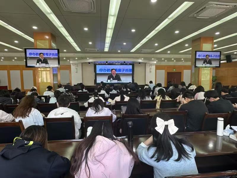领导、法学系全体教师和部分法学专业学生在佳山校区会议中心二楼报告厅分会场聆听讲座,学院部分师生通过网络线上收看了讲座。