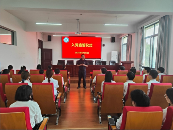 在佳山校区公法楼301报告厅举行2025年上半年新发展党员入党宣誓仪式。学院党委书记胡正友、正处级组织员江文丽、各学生党支部书记、全体新发展党员参加了宣誓仪式,法学本科生党支部书记邢维迢主持仪式。