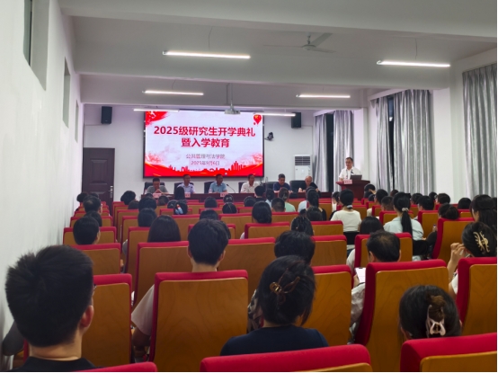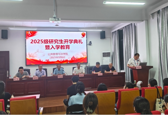 2025级硕士研究生开学典礼暨入学教育在公法楼301报告厅隆重举行。院党委书记胡正友,院党委副书记、纪委书记、副院长周浩然,研究生导师代表袁同成、孔东菊、徐虹,公共管理硕士(MPA)、法律硕士(JM)教育中心主任问延安、房梁和公共管理学学科点负责人施磊磊以及2025级全体研究生参加开学典礼。副院长王务均主持开学典礼。