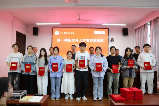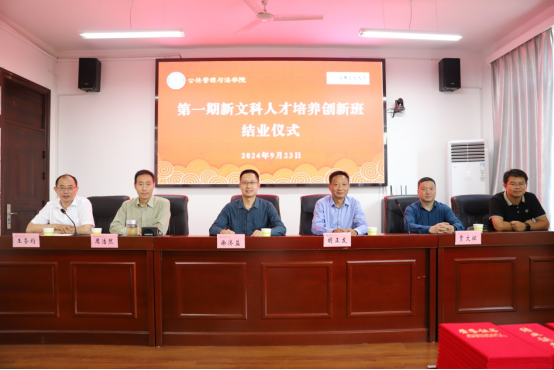 第一期“新文科创新人才培养创新班”结班仪式在公法楼301报告厅隆重举行。院党委书记胡正友,院长徐济益,院党委副书记、副院长周浩然,副院长杨哲、王务均,优秀校友代表贾文坛,第一期“创新班”班主任张增国,第一期、第二期“创新班”全体学员参加结业仪式。副院长王务均主持仪式。